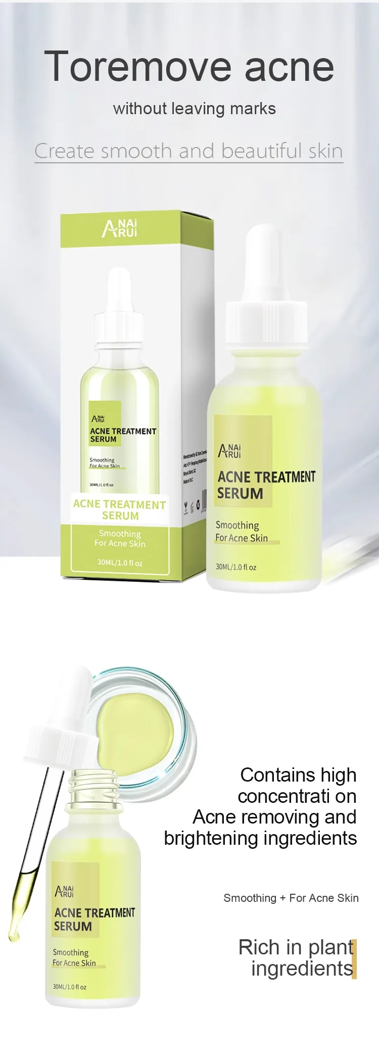Ideal for brands seeking quality anti-acne serum solutions, this product offers full customization in formulation, fragrance, and packaging.