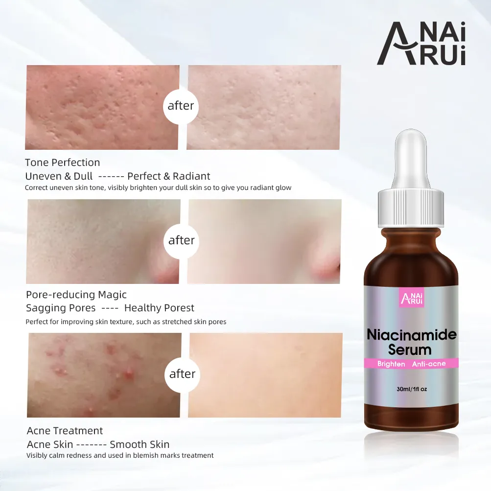 Niacinamide improves skin color,fade melanin,help to have brightening skin.Improves the appearance of skin texture,such as pores,acne,fine lines and dullness.Use daily to give face and body a healthy glow.