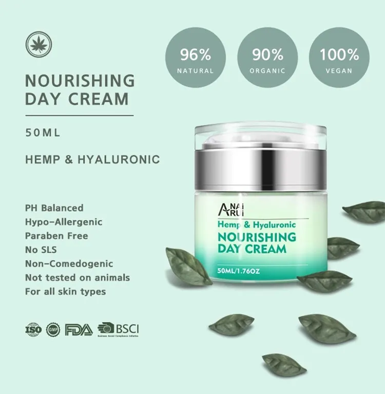 This ultra nourishing day treatment is infused with 100% Organic Hemp Seed Oil & extracts which are rich in omega fatty acids, gamma linolenic acids, Vitamin E and antioxidants that help tired, dull and dehydrated skin. Hyaluronic acid has strong hydrating and anti-aging benefits, locking in moisture to make skin smooth and supple. Helps protect skin from free radicals, diminish signs of aging and leaves skin feeling revitalized and hydrated.