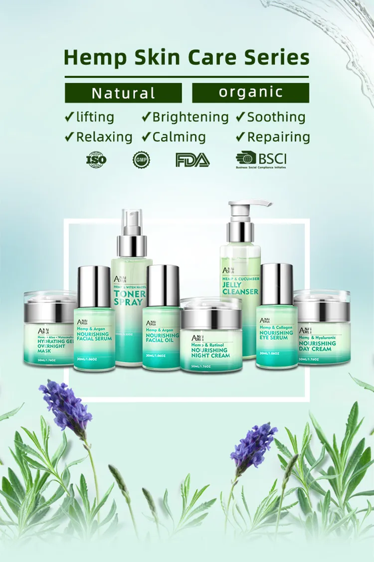 The Private Label 100% Natural Hemp Seed Oil Anti-Aging Whitening Moisturizer Skin Care Set combines the power of pure hemp seed oil with advanced whitening and anti-aging ingredients.