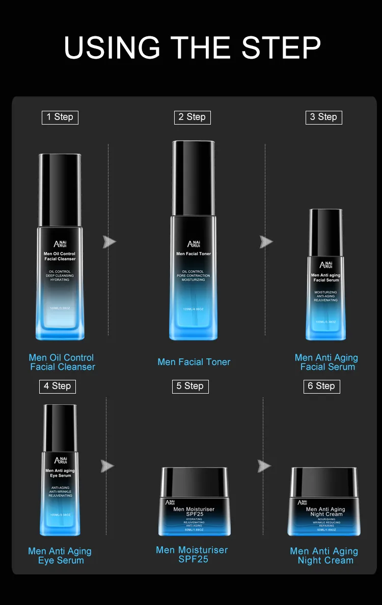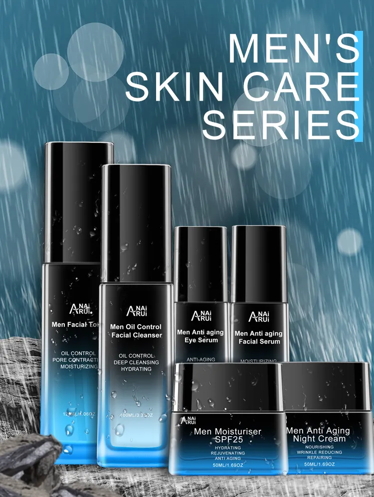 This men's skin care set is designed for men with oily and acne-prone skin. It includes cleansers, toners, essences and creams to help clean pores, balance oil secretion, reduce acne and blackheads, and restore fresh and healthy skin.