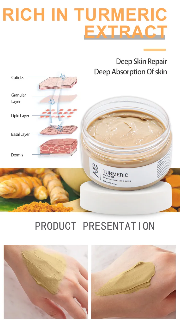Private Label OEM Chinese Supplier Skin Care Brightens Repairs Anti-Aging Turmeric Clay Mud Mask