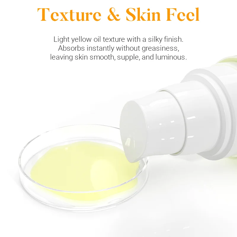 Squalene and Vitamin E form a lightweight protective film that locks in moisture and strengthens the skin barrier.